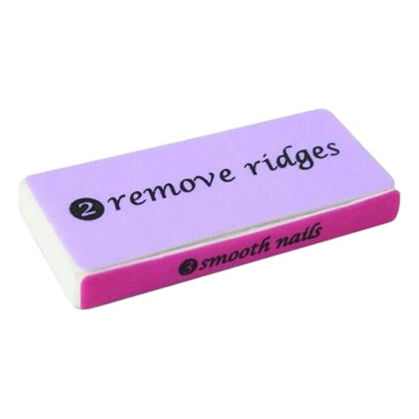 Each side contains a different feature - 1. file, 2.remove ridges, 3.smooth nails, 4.buff.