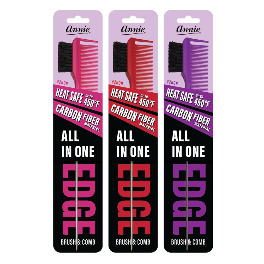 The best edge brushes around just got better with Annie's new carbon fiber, heat safe, All In One Edge Brush! Perfect for natural hair or wigs, these edge brushes are safe to use with heat up to 450 degrees! Forge the perfect styles with high heat and the All In One Edge Brush with natural boar bristle!