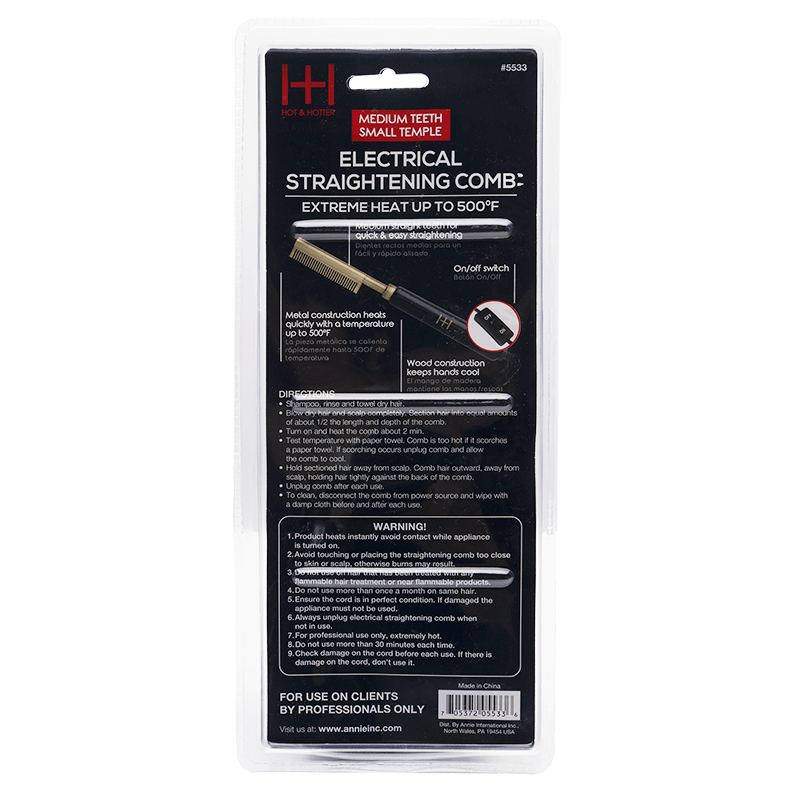 Hot & Hotter Electrical Straightening Comb Medium Teeth w/ Small Temple Head #5533