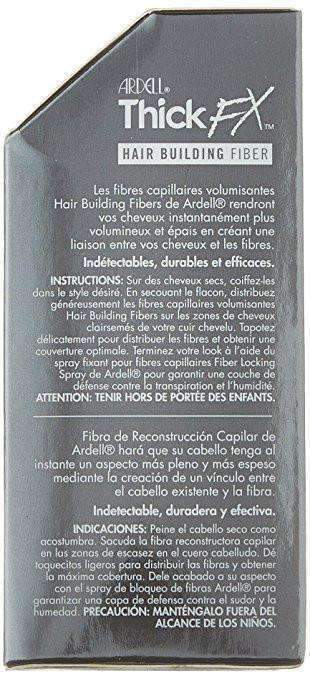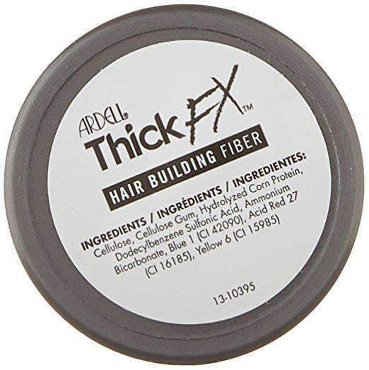 Ardell Thick FX Hair Building Fiber (12g / 0.42oz) is made of all-natural, colored keratin protein. The static electric charge causes the fibers to blend with your existing hair so it is durable and undetectable under all conditions, making it appear thicker. The fibers are wind, rain, and perspiration-resistant, yet easy to remove with shampoo. They can also be used to hide sparse areas or balding spots, to touch up root color, or to blend hair extensions.