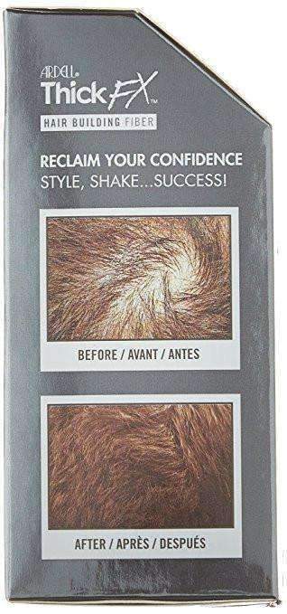 Ardell Thick FX Hair Building Fiber (12g / 0.42oz) is made of all-natural, colored keratin protein. The static electric charge causes the fibers to blend with your existing hair so it is durable and undetectable under all conditions, making it appear thicker. The fibers are wind, rain, and perspiration-resistant, yet easy to remove with shampoo. They can also be used to hide sparse areas or balding spots, to touch up root color, or to blend hair extensions.