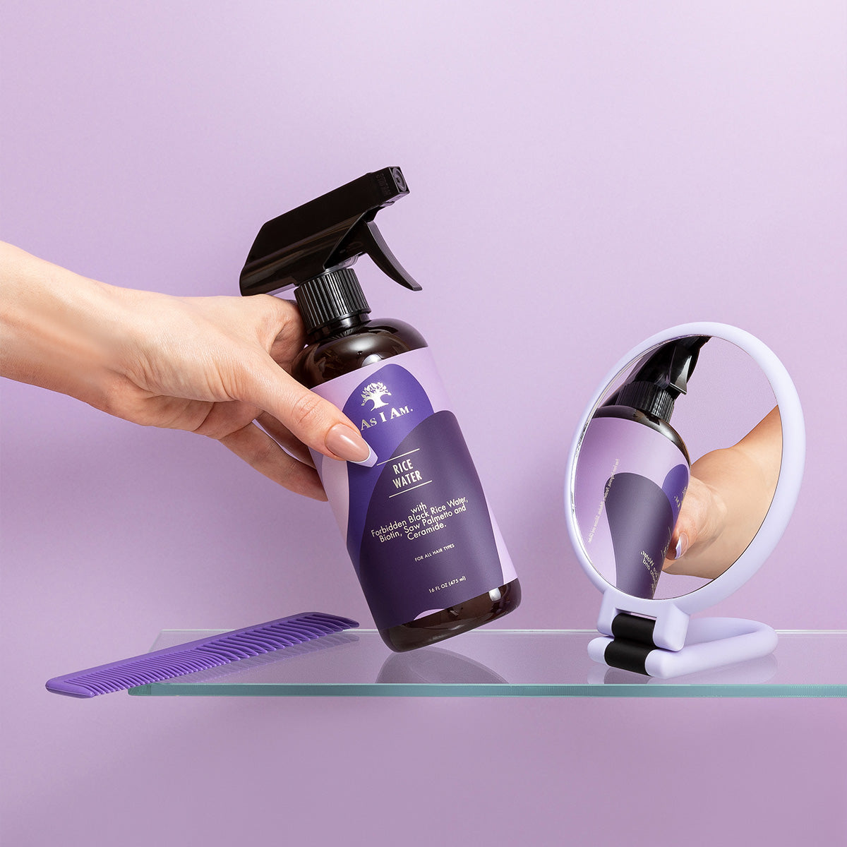 - Use the As I Am rice water spray daily to rinse shampoo, conditioner, or stylers from hair, or as a shower water substitute.