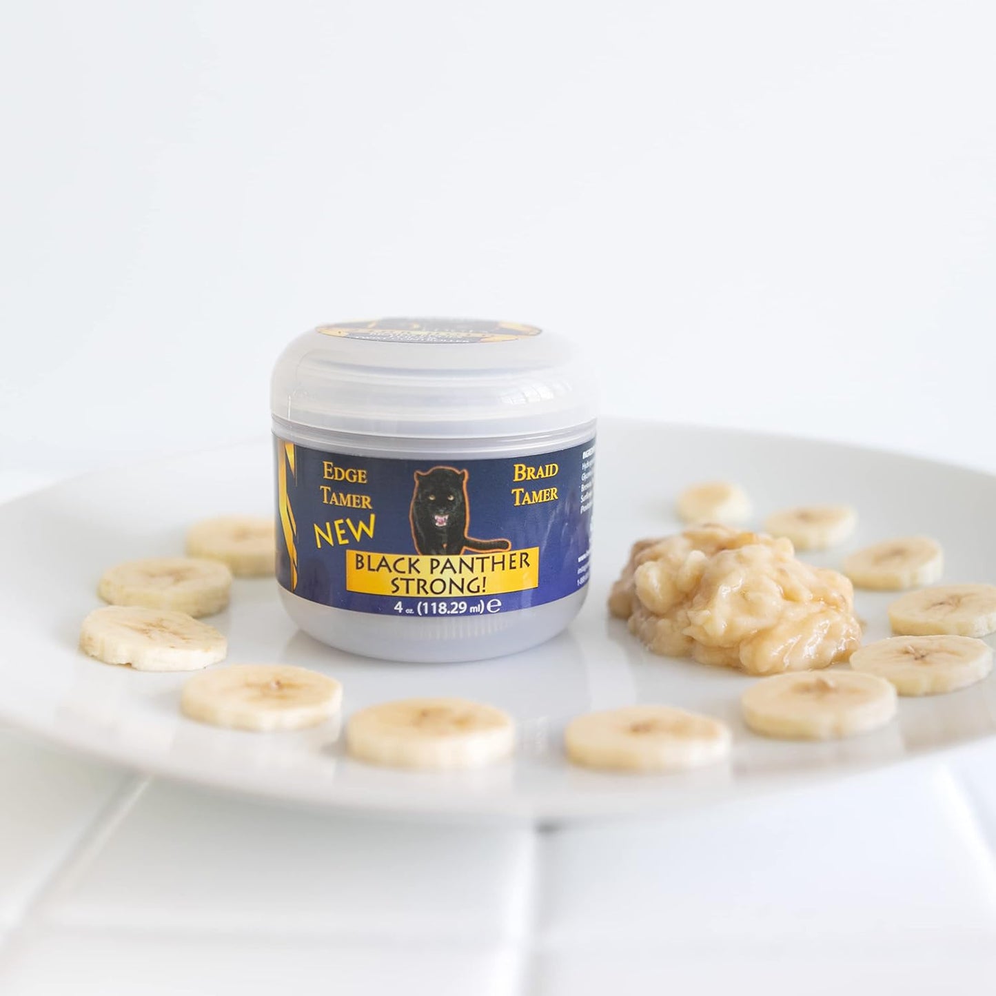 Black Panther Strong Edge Control is a castor oil based pomade with a firm hold and creamy consistency that is easy to use, non flaking and non greasy. This product will create definition in twists and braids of all sizes.