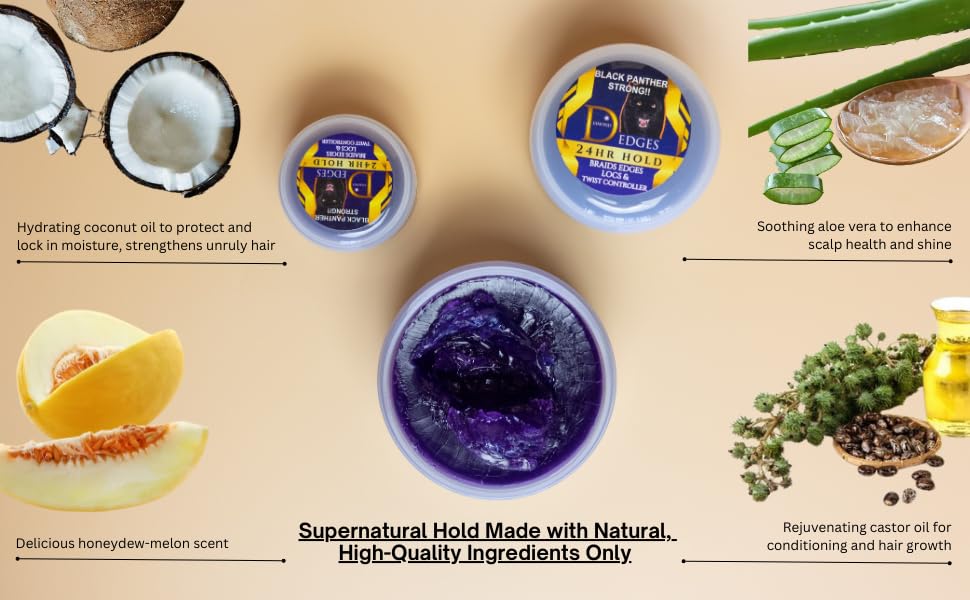 Black Panther Strong Edge Control is a castor oil based pomade with a firm hold and creamy consistency that is easy to use, non flaking and non greasy. This product will create definition in twists and braids of all sizes.