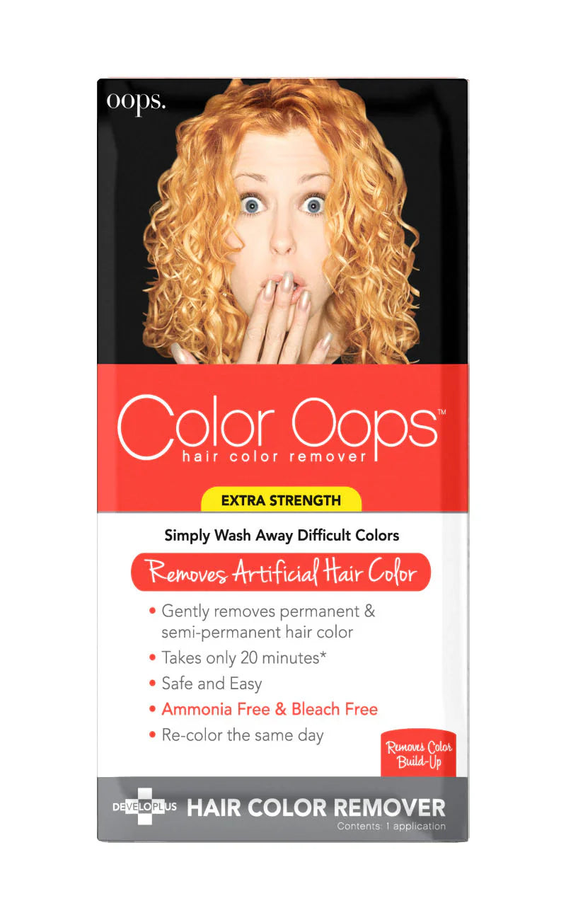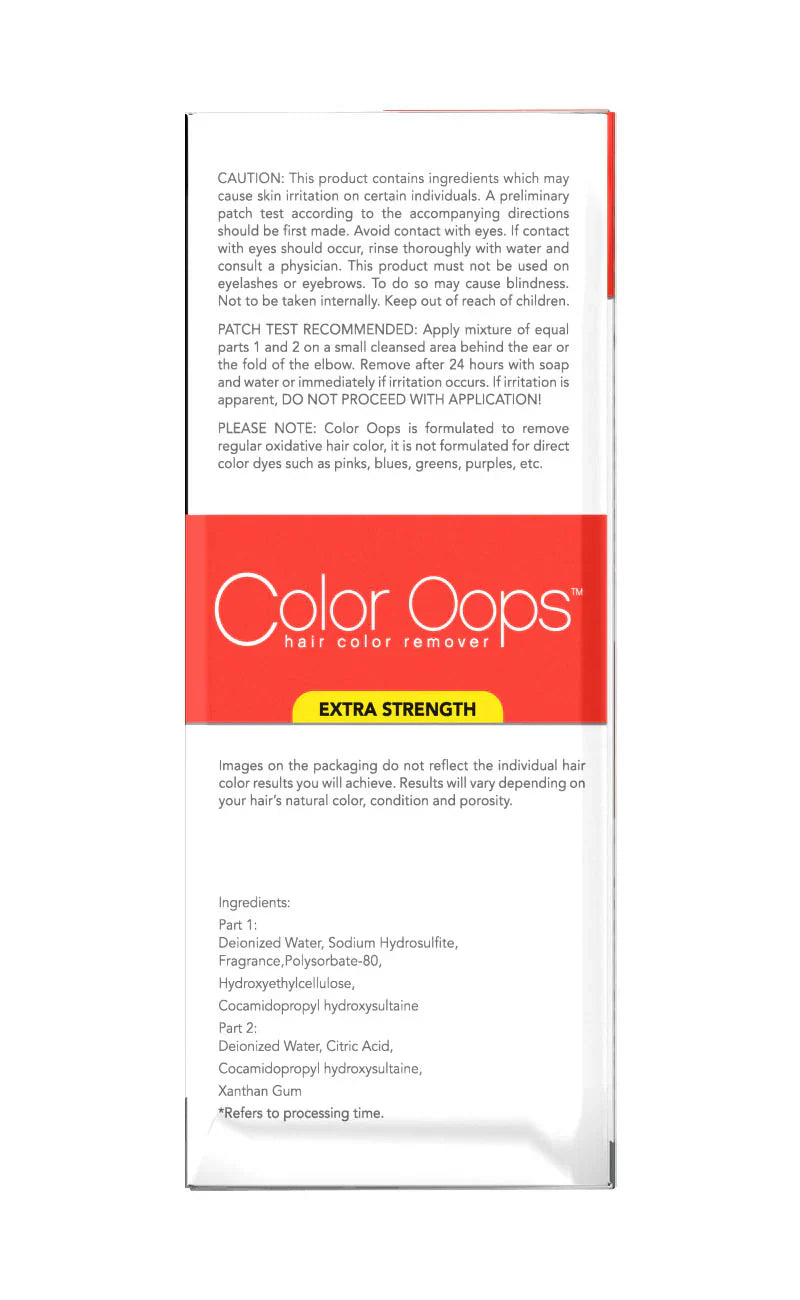 Color Oops Hair Color Remover removes regular oxidative hair dye by shrinking the dye molecules, allowing them to be washed away. In most cases, your hair will not return to your natural color due to the oxidative process of the hair dye which permanently altered the hair pigment. Color Oops Hair Color Remover will remove only the dye, revealing the color of the hair after the dye had oxidized it.