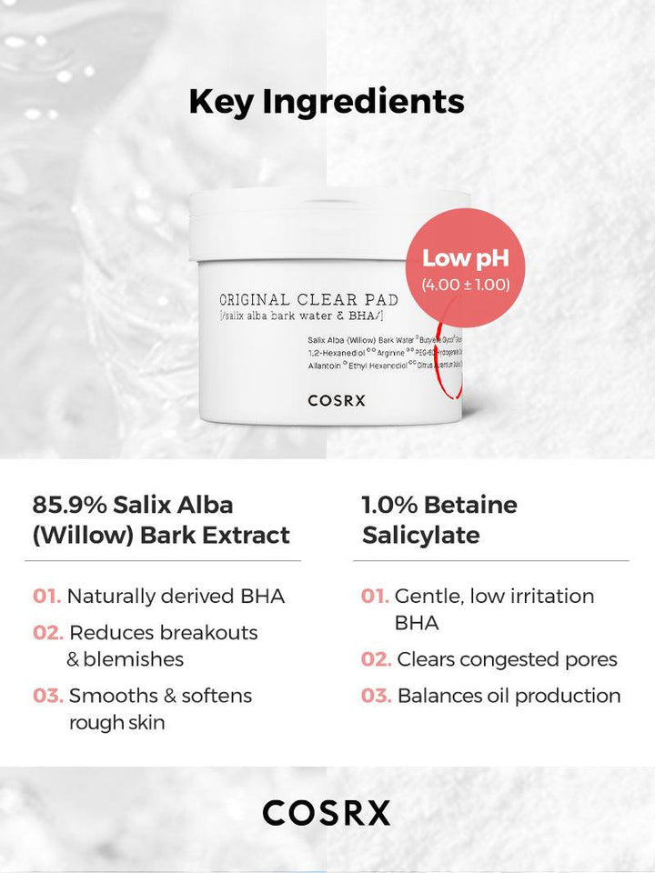 Salix Alba (Willow) Bark Water, Butylene Glycol, Glycerin, Betaine Salicylate, 1,2-Hexanediol, Arginine, PEG-60 Hydrogenated Castor Oil, Panthenol, Allantoin, Ethyl Hexanediol, Citrus Aurantium Dulcis (Orange) Peel Oil, Melaleuca Alternifolia (Tea Tree) Leaf Oil, Sodium Hydroxide, Sodium Hyaluronate