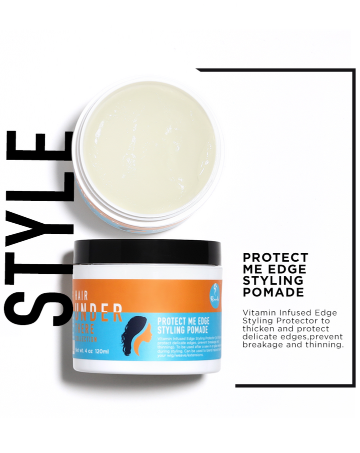 Use Protect Me Edge Styling Pomade to smooth natural hair and to blend with extensions, wigs, and/or weaves. Perfect pomade to create the best edges for your braided style.