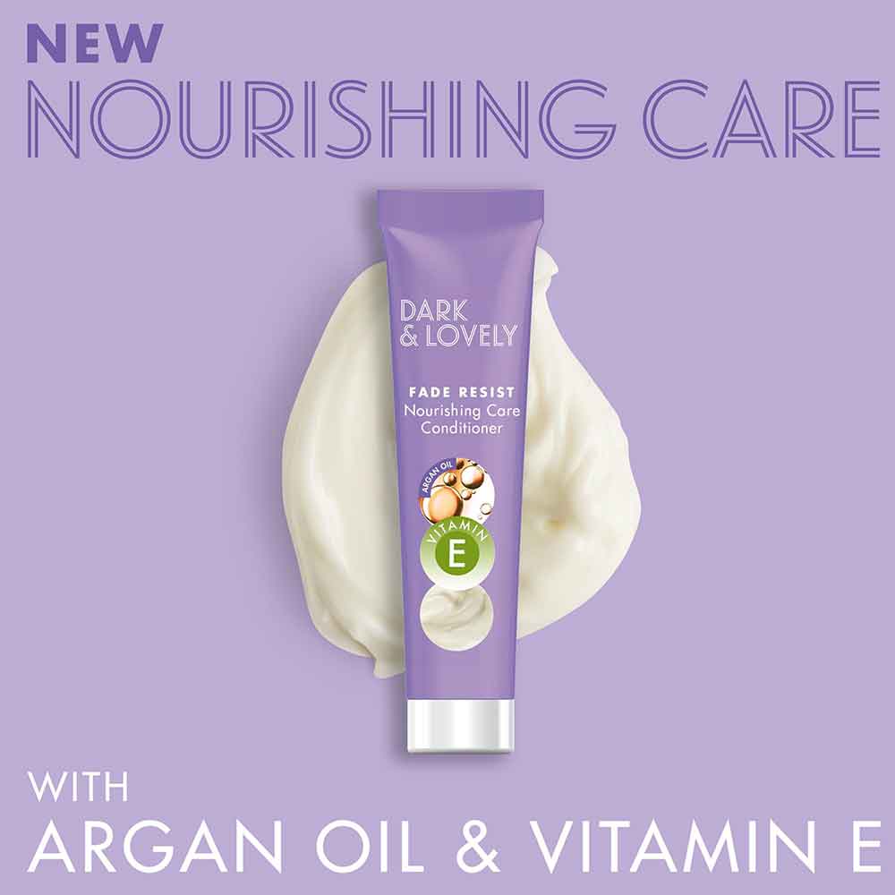Apply enough Dark and Lovely Nourishing Care Conditioner to saturate hair. Massage through hair. Leave on hair for 3 minutes. Rinse out with warm water. Save remaining Dark and Lovely Nourishing Care Conditioner for multiple applications.