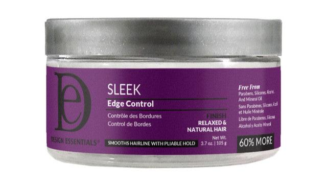 Edges laid. Style slayed. Design Essentials Sleek Edge Control is a moisturizing and defining gel that smoothes the hairline while protecting those delicate edges. It also minimizes frizz and tames any flyaways without buildup.