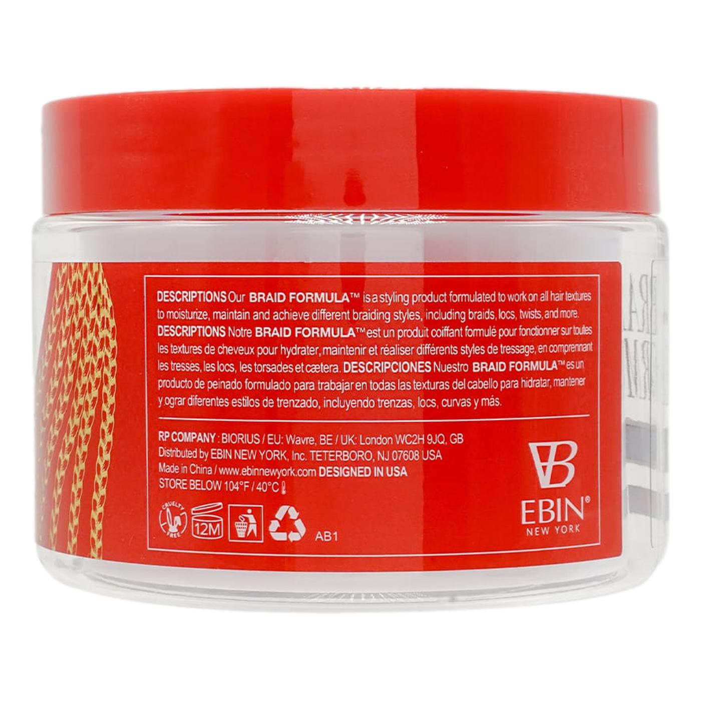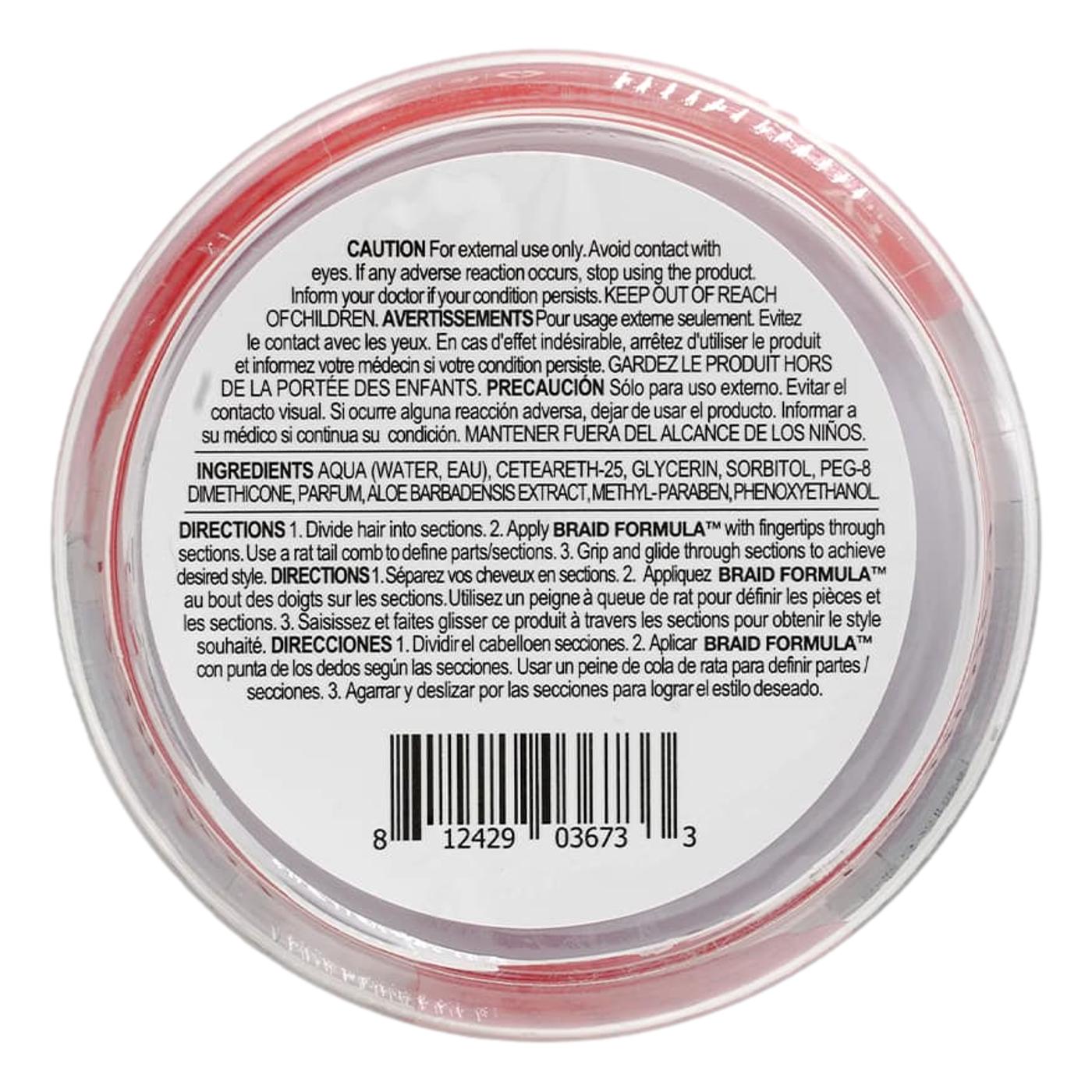 Braid Formula is a styling product formulated to work on all hair texture to moisturize maintain and achieve different braiding styles, including braids, locs, twists, and more. Conditioning gel to soften to improve the workability of the hair to prevent breakage caused by tugging and tightness.