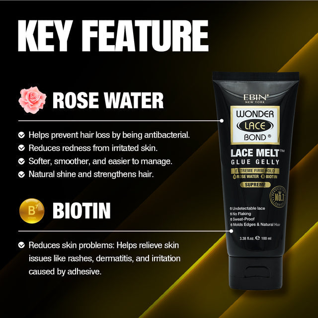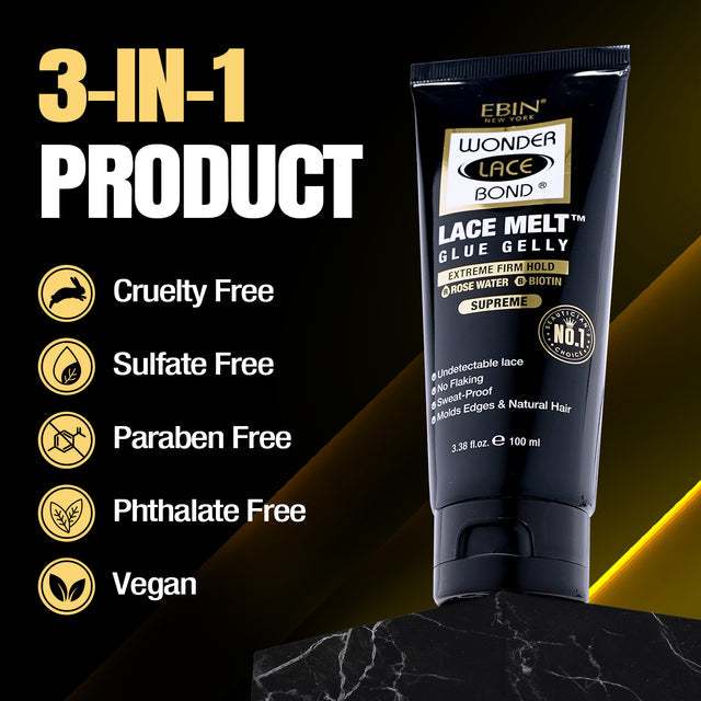 Achieve a flawless and natural style effortlessly with Wonder Lace Melt Glue Gelly. Specially designed for lace wigs and lace parts, this strong-hold adhesive provides long-lasting and secure attachment all day. The fast-drying formula saves you time during application, while the invisible finish ensures a seamless and natural look. Its waterproof and sweat-resistant features make it perfect for humid weather or intense activities, ensuring your wig stays in place no matter what. This product is gentle on the skin, offering a comfortable and irritation-free experience. It’s easy to use, making it suitable for both beginners and experienced wig users alike.