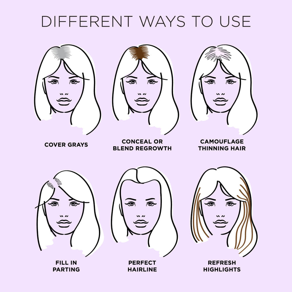 Hold can 6 inches from dry hair. Spray in a steady and continuous sweeping motion for even, blended color. Let dry for 60 seconds.