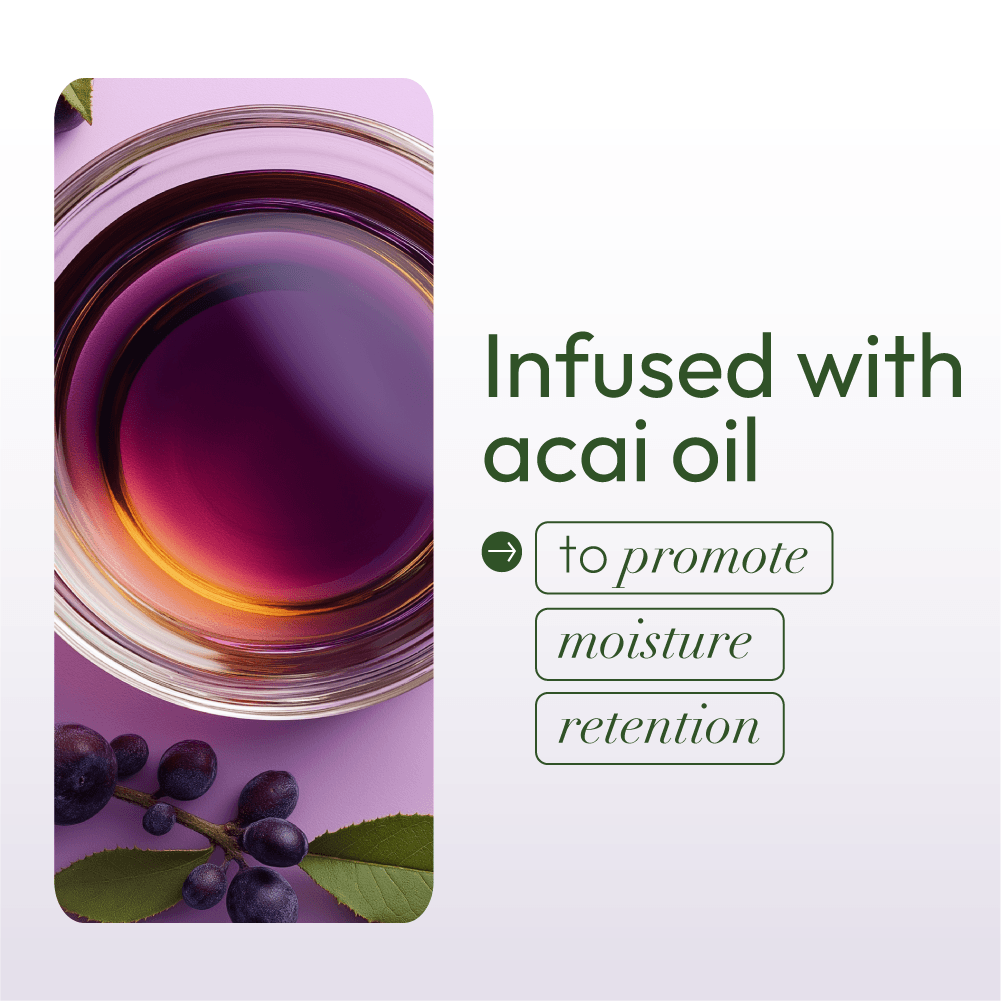 WATER (AQUA, EAU), PEG-12 DIMETHICONE, FRAGRANCE (PARFUM), GLYCERIN, PROPYLENE GLYCOL, PEG-40 HYDROGENATED CASTOR OIL, HYDROXYETHYLCELLULOSE, PHENOXYETHANOL, ETHYLHEXYLGLYCERIN, AMIMETHYL PROPANOL, MENTHOL, SALIX ALBA (WILLOW) BARK EXTRACT, SILICONE QUATERNIUM-16, UNDECETH-11, BUTYLOCTANOL, UNDECETH-5, DISODIUM EDTA, PANTHENOL, EUTERPE OLERACEA (ACAI) FRUIT OIL, RICINUS COMMUNIS (CASTOR) SEED OIL, OLEAEUROPEA (OLIVE) FRUIT OIL, LAVENDULA AUNGUSTFOLIA(LAVENDER) OIL, MELALEUCA ALTERNIFOLIA (TEATREE)OIL, D-BIOTIN, CARAMEL, CITRAL, LIMONENE, LINOLOOL