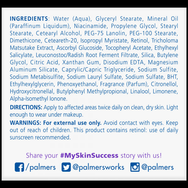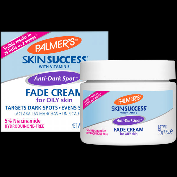 Palmer's Skin Success Fade Cream gives you a flawlessly radiant complexion by effectively correcting discoloration such as dark spots, age spots, post-acne scars and uneven skin tone. Leaves a matte finish and controls shininess for skin types prone to oiliness