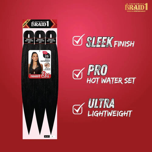Braid 1 boasts Quick & Performance, Natural Texture, Crystal Hair Color, and Professional Hot Water Set features. Not only does it saves your braiding time. but it also elevates the pleasure of braiding with its superior natural texture and enables seamless, sleek finish with hot water set professionally.