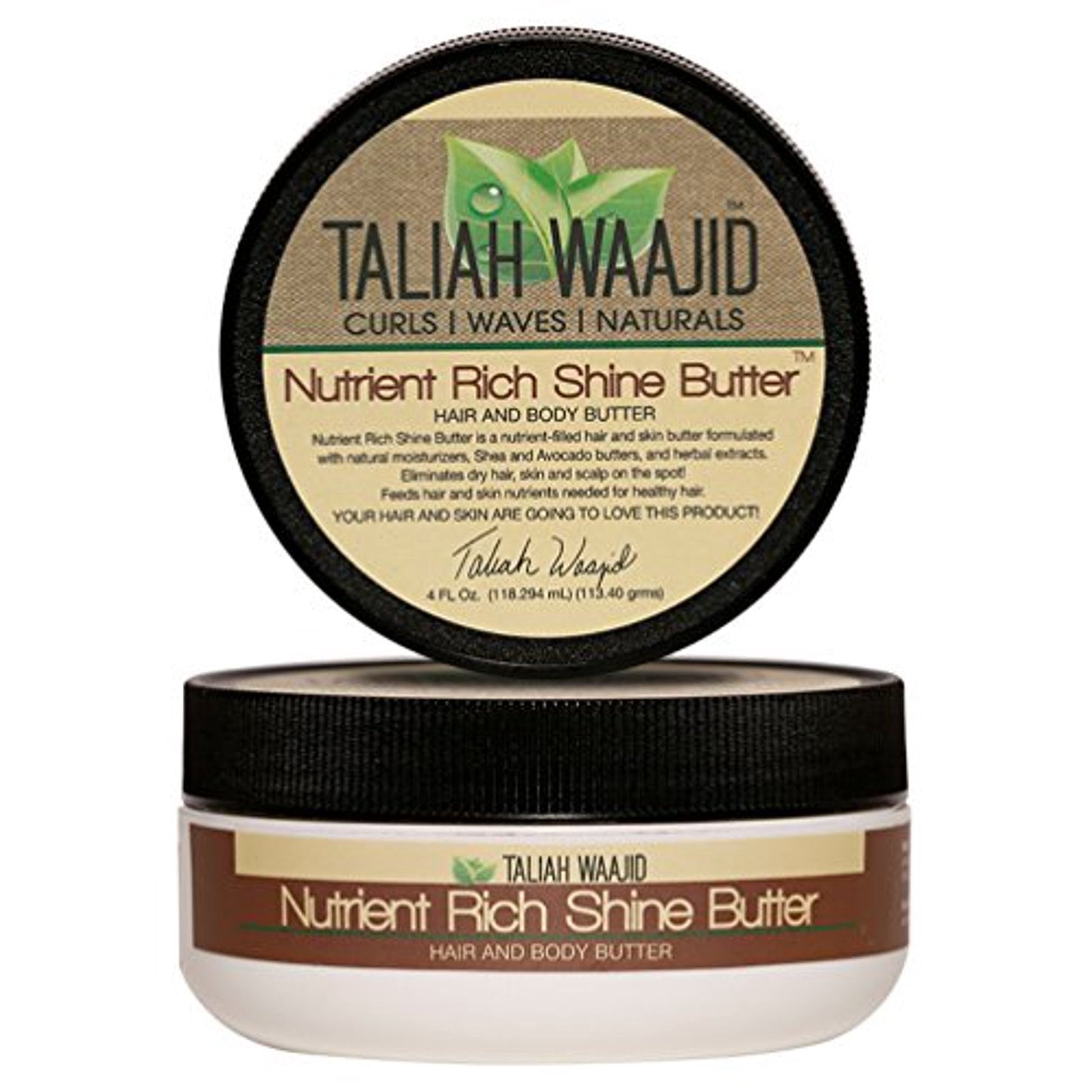 Hair: Rub small amount the Nutrient Rich Shine Butter into palms of hands. Distribute through hair using fingers to place and style.