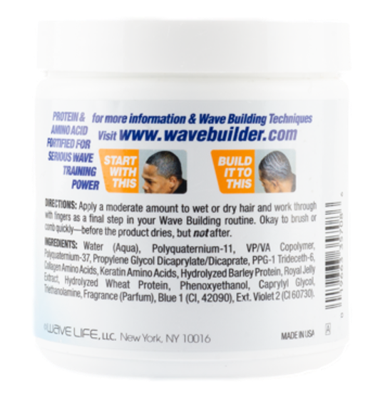 Apply a moderate amount to wet or dry hair and work through with fingers with the grain of your wave pattern, as a final step in your wave building routine. Brush through hair quickly before the product dries, but not after.