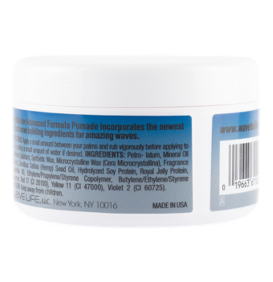 WaveBuilder Super Wax Pomade enhances wave definition & provides an extra strong hold for hair that’s hard to wave. Infused with oils and proteins, Super Wax Pomade penetrates waves, locking in moisture and laying down stubborn hair. It helps prevent breakage when wolfing and brushing & soothes the scalp. Extra oils boost natural shine without the greasy look and feel.